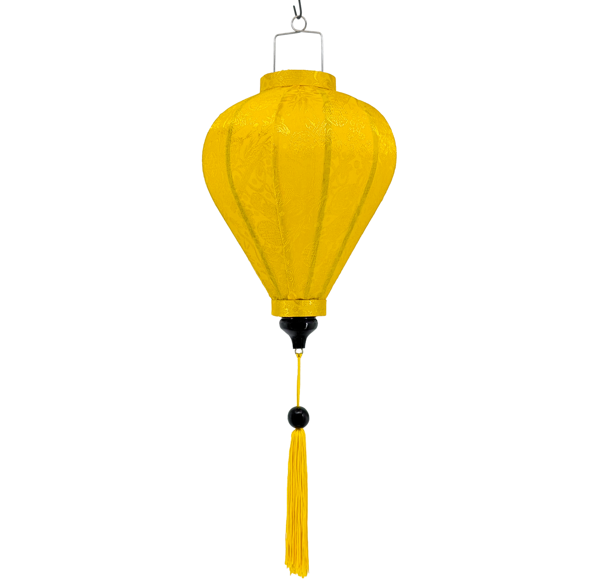 Đèn lồng lụa Jacquard Hội An màu vàng tươi này là một cách tuyệt vời để thêm sức sống cho bất kỳ góc nào. Do độ dày của vải, chúng tôi khuyên bạn nên thắp sáng chúng từ bên ngoài vì bạn sẽ thấy bóng đèn khi thắp sáng từ bên trong. Khi thắp sáng từ bên ngoài, bạn có thể thấy các hoa văn và nhiều sắc thái khác nhau trong ánh sáng.